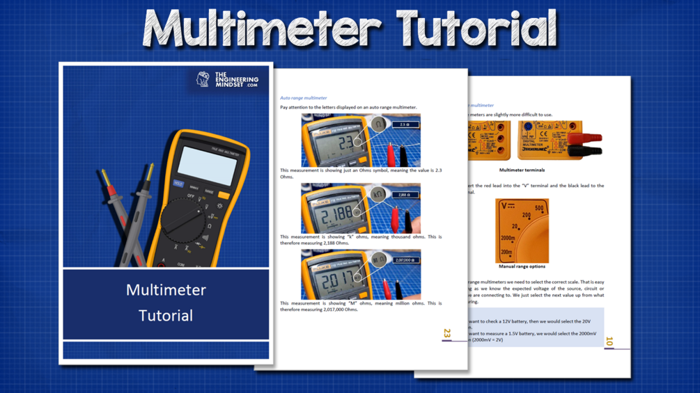 Includes DC Voltage, AC Voltage, Resistance, DC Current, AC Current, Continuity test, Frequency, Diodes, LED's, Capacitors, Transistors, Temperature, Batteries and tips to safely use a multimeter.